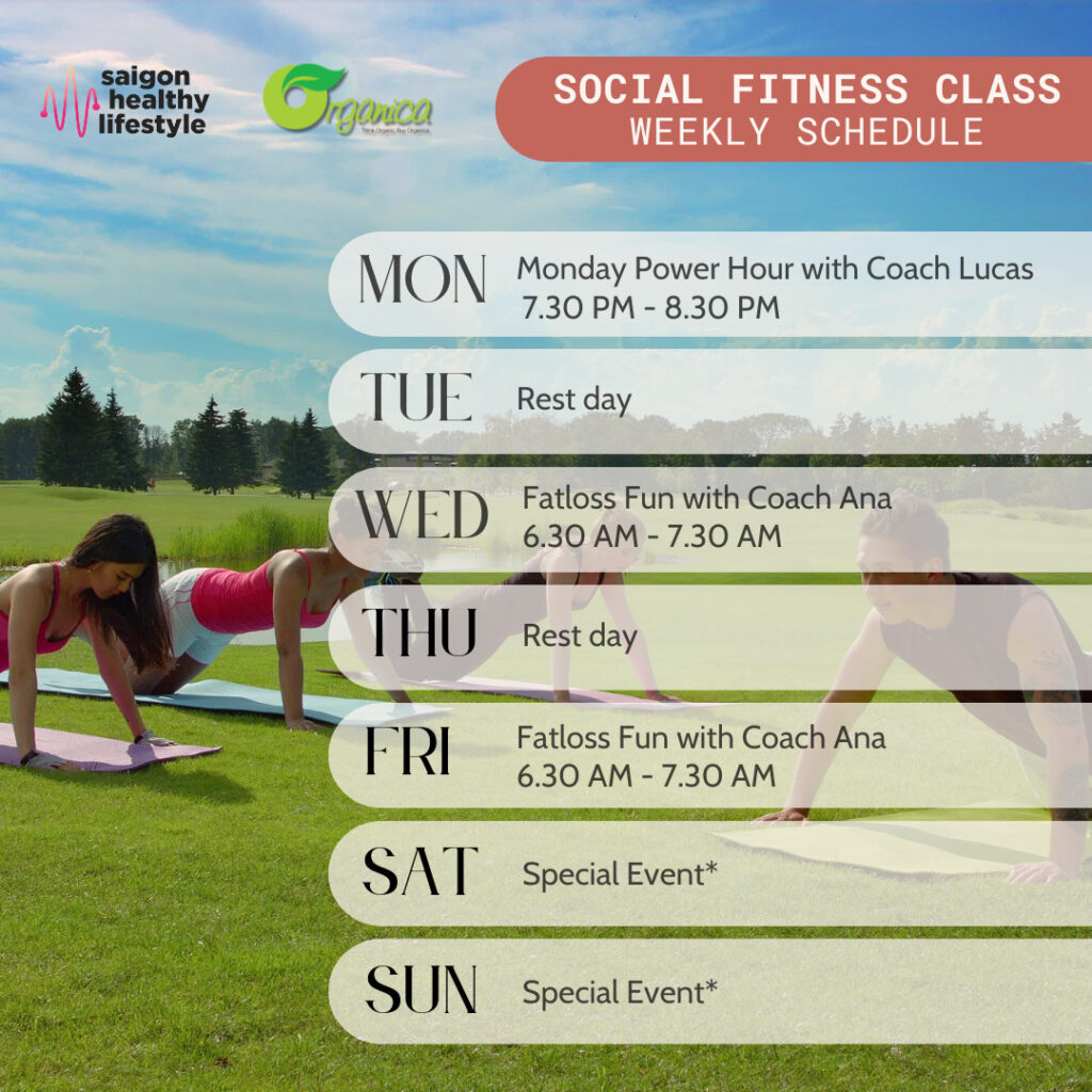 We’re excited to announce that our Social Fitness Classes will be held at Organica – Rosemary Hill Thao Dien, your one-stop shop for eco-conscious living!